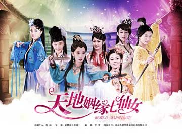 《天地姻緣七仙女》是2010年由北京優(yōu)賽環(huán)球文化有限公司以及北京藝德環(huán)球文化藝術有限公司聯合出品的古裝神話電視連續(xù)劇,由藝德環(huán)執(zhí)導,李夢編劇,由陳浩民、藍燕、劉洋、吳慶哲、梁家仁、于娜、李依曉、嘻哈包袱鋪等主演。該劇主要講述了天地六界因一顆小小龍珠而雞犬不寧,七位仙女與各路神仙集體下凡,人、仙、妖、魔紛紛斗法,不僅除了熟知的七仙女與董永的愛情故事外,還有另外六位仙女也擁有各自的浪漫情感的故事的喜劇故事。