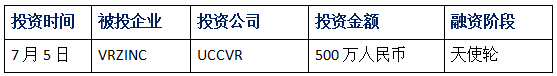 7月4日,成立不足兩個月的國內VR文娛產業(yè)媒體VRZINC獲得500萬元天使輪融資,由專注于VR產業(yè)投資的UCCVR領投,零一創(chuàng)投等公司跟投。