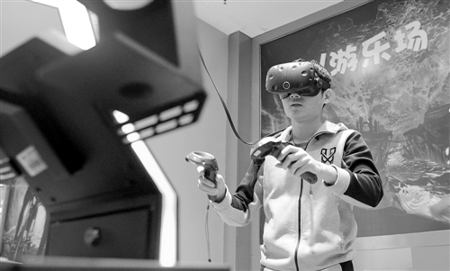 9月29日,河南鄭州二七萬達廣場游客在體驗虛擬現(xiàn)實射擊游戲。9月28日,該省首家綜合性虛擬現(xiàn)實主題樂園開業(yè),最大亮點是兩人可以同時交互體驗,將玩、學(xué)、動完美融合在一起,讓VR技術(shù)真正地走到了現(xiàn)實生活中。