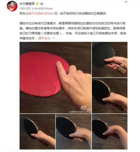 在微博中鄧亞萍的公眾好感度也明顯提升,被戲稱為“初代目大魔王”的她經(jīng)常為網(wǎng)友解答對乒乓球運動員的各種疑問,比如“為什么對著球拍哈氣”、“橫排的正確握姿”等等。