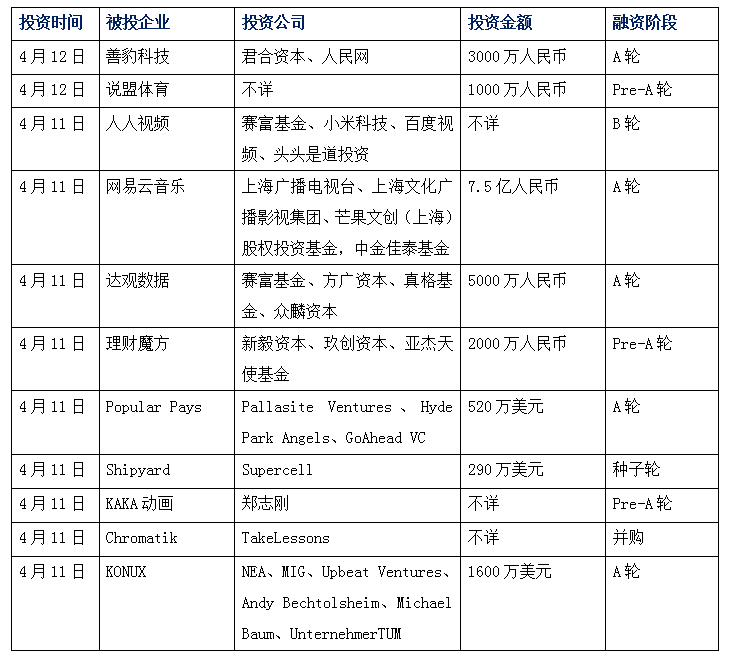今日娛投:善豹科技獲千萬A輪融資,資本青睞游戲業(yè);網(wǎng)易云音樂獲7.5億融資,估值80億躋身獨(dú)角獸;理財(cái)魔方獲Pre-A輪融資,專注2C智能投顧服務(wù)