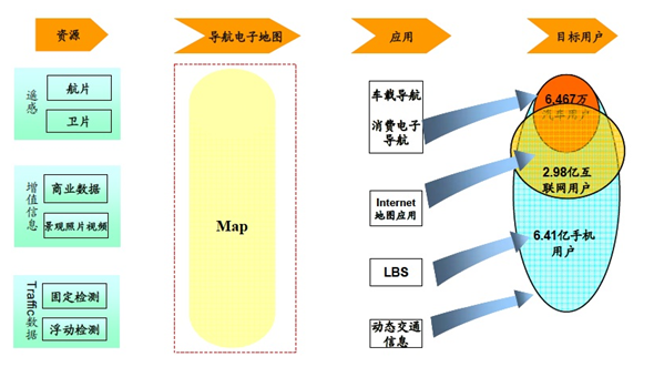 公司的下游主要包括:1)車載導(dǎo)航系統(tǒng);2)PND,便攜導(dǎo)航系統(tǒng)(導(dǎo)航儀);3)電子地圖服務(wù),包括互聯(lián)網(wǎng)地圖服務(wù),基于LBS的地圖服務(wù),交通系統(tǒng)的地圖服務(wù)。