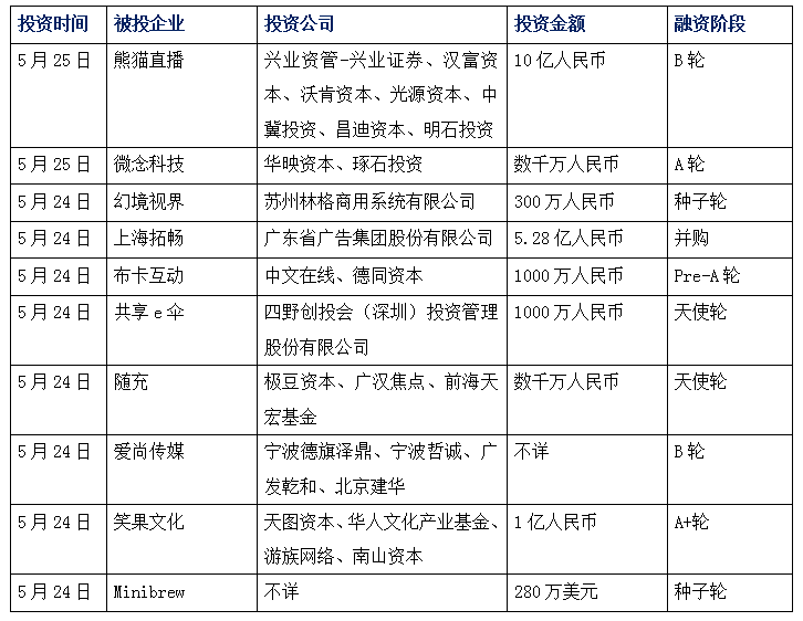 今日娛投:熊貓直播獲10億投資,月活用戶8000萬;微念科技完成A輪融資,專注短視頻網(wǎng)紅品牌孵化;幻境視界獲百萬投資,打造VR家裝平臺WO+