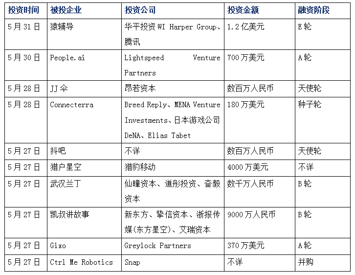 今日娛投:猿輔導(dǎo)完成E輪融資,躋身獨角獸行列;用AI幫助銷售人員優(yōu)化工作流程,People.ai獲A輪融資;自助健身倉“抖吧”獲數(shù)百萬天使投資