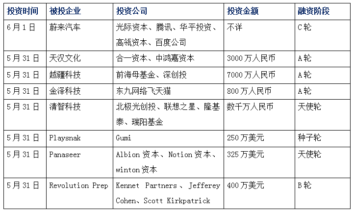 今日娛投:蔚來(lái)汽車(chē)完成C輪融資,光際資本領(lǐng)投;實(shí)景娛樂(lè)公司“天漢文化”獲千萬(wàn)投資;越疆科技獲A輪融資,開(kāi)啟智能輕工業(yè)時(shí)代