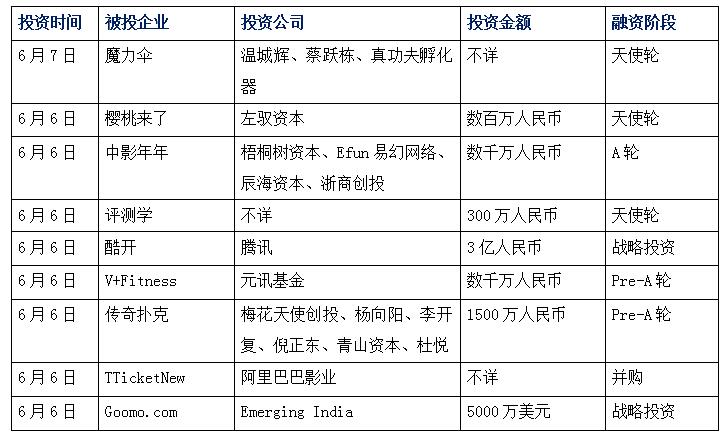 今日娛投:共享雨傘“魔力傘”完成天使輪融資,溫城輝領投;“櫻桃來了”獲百萬投資,打造兒童時尚生活內容第一品牌;中影年年獲千萬融資,《血色蒼穹》要做全產業(yè)鏈運營