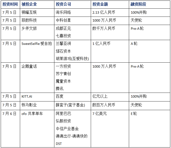 今日娛投:企鵝童話完成Pre-A輪融資,原來王者榮耀兒童限玩另有原因;鐵馬影業(yè)獲天使輪融資,薛蠻子希望突破自己;ofo小黃車又入囊超7億美元E輪融資