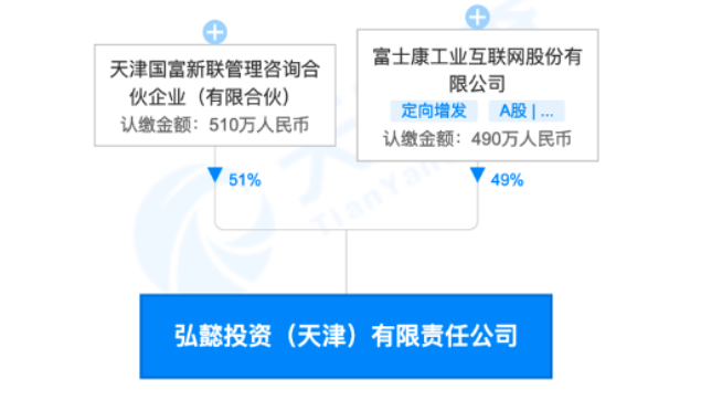 4月12日,弘懿投資(天津)有限責(zé)任公司成立,注冊(cè)資本1000萬元人民幣,由天津國(guó)富新聯(lián)管理咨詢合伙企業(yè)(有限合伙)、工業(yè)富聯(lián)共同持股,二者持股比例分別為51%、49%。
