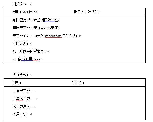 日報和周報為電子格式,存在于OA系統(tǒng)或電子郵件中。日報由員工每日早晨填寫,周報由員工每周一填寫。日報和周報的重要意義在于自己提醒自己,有哪些工作已經(jīng)完成,哪些沒有完成。做到每日每周都有計劃。此外,日報和周報也是管理人員考核的重要依據(jù)。此工具將工作中的狀態(tài)自然保留下來,便于日后總結(jié)經(jīng)驗和激勵。