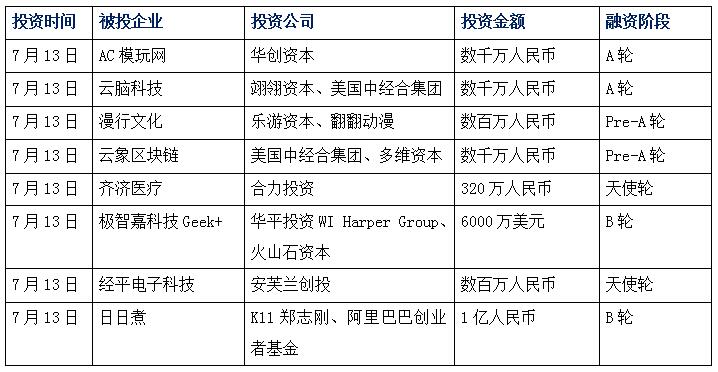 今日投融資新聞