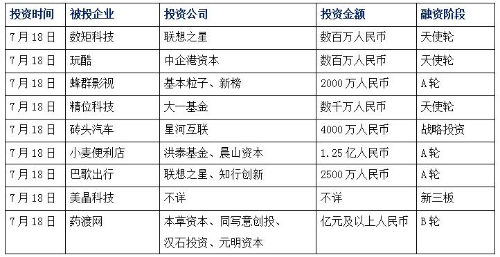 今日投融資新聞
