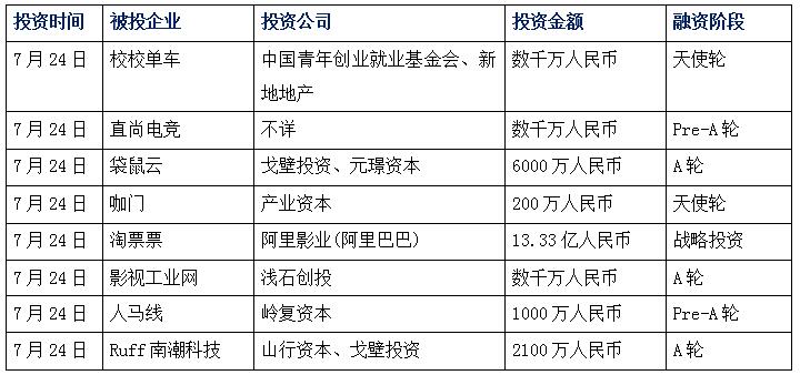 今日投融資新聞