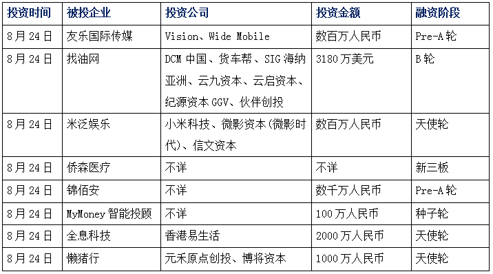 今日娛投:友樂國際獲百萬投資,發(fā)力境外廣告精準投放;找油網完成B輪融資,布局線下網點;米泛娛樂獲天使投資,微影時代領投