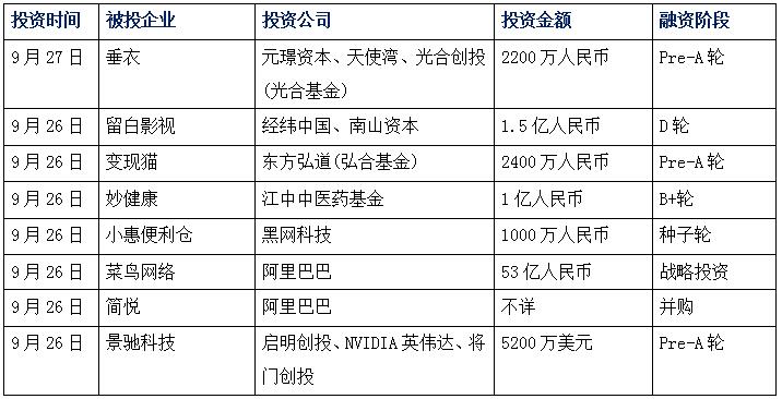 今日投融資新聞