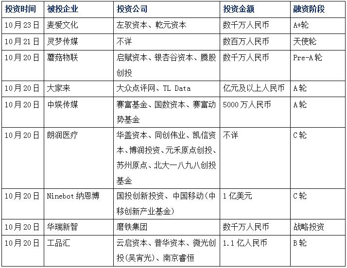 今日娛投:麥愛文化獲千萬投資,未來將加快電音全領(lǐng)域布局;靈夢傳媒獲天使融資,打造商業(yè)性泛娛樂生態(tài)閉環(huán);蘑菇物聯(lián)獲千萬投資,啟賦資本領(lǐng)投