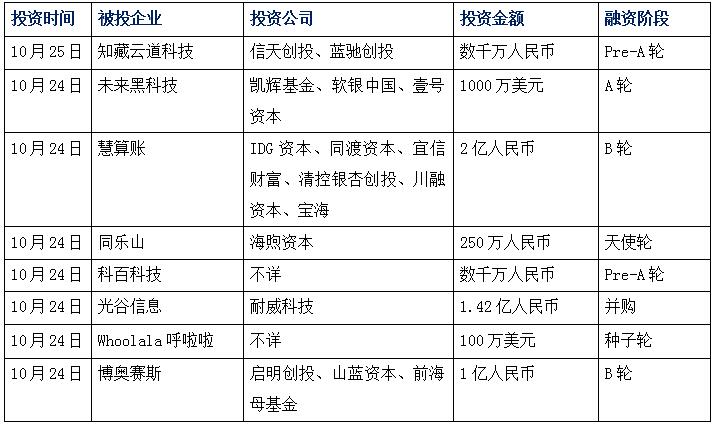 今日娛投:知藏科技獲千萬投資,深挖物流行業(yè)智能化解決方案;未來黑科技獲A輪融資,融資將用于產(chǎn)品量產(chǎn);慧算賬獲億元投資,多家機(jī)構(gòu)參投