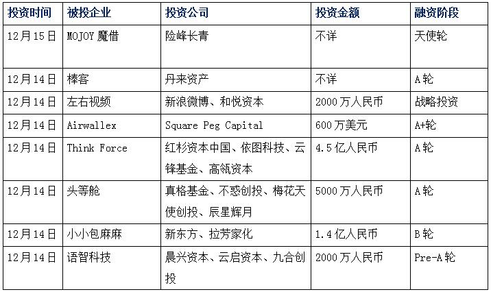 今日娛投:魔借獲天使融資,險(xiǎn)峰長(zhǎng)青領(lǐng)投;為客戶提供黑科技,棒客獲A輪融資;左右視頻獲千萬(wàn)融資,新浪微博領(lǐng)投