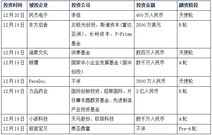 今日娛投:民杰電子獲百萬(wàn)融資,李佳領(lǐng)投;東方啟音獲B輪融資,深耕言語(yǔ)治療;涵象文化獲天使融資,洪泰基金領(lǐng)投