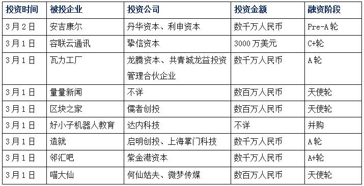 今日娛投:安吉康爾獲千萬(wàn)融資,利申資本領(lǐng)投;容聯(lián)獲C+輪融資,估值達(dá)5億美金;瓦力工廠獲A輪融資,龍騰資本參投