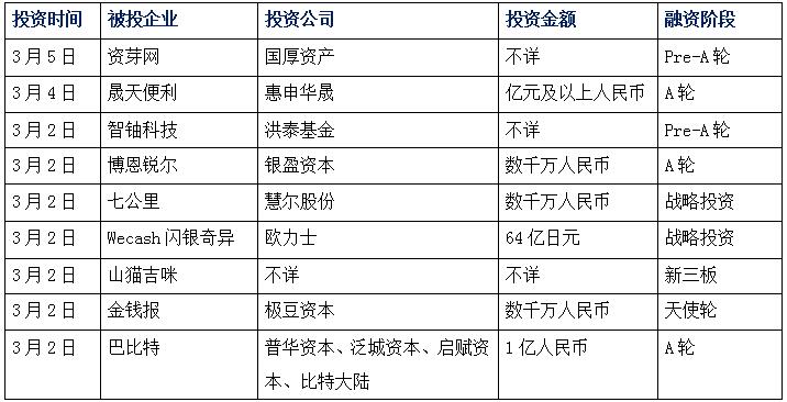 今日投融資新聞