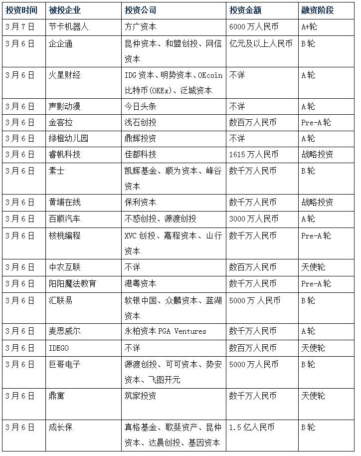 今日創(chuàng)投:節(jié)卡機器人獲A+輪融資,方廣資本出資;企企通獲億元投資,用于SRM產(chǎn)品研發(fā);火星財經(jīng)獲A輪融資,估值達1.5億