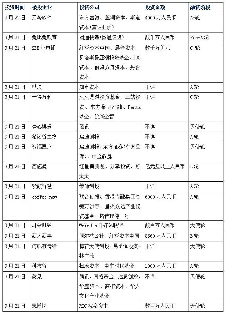 今日創(chuàng)投:云勢軟件獲千萬融資,東方富海領(lǐng)投;教育AI共享平臺“兔比兔”完成千萬融資;SEE小電鋪獲C+輪融資,紅杉資本領(lǐng)投
